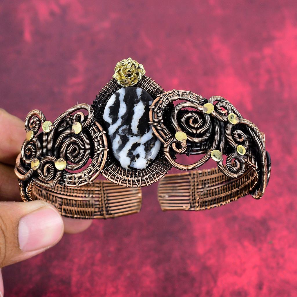 White Buffalo Turquoise Bangle Adjustable Cuff Bracelet Copper Wire Wrapped Gemstone Bangle Handmade Jewelry Flower Bangle Anniversary Gifts