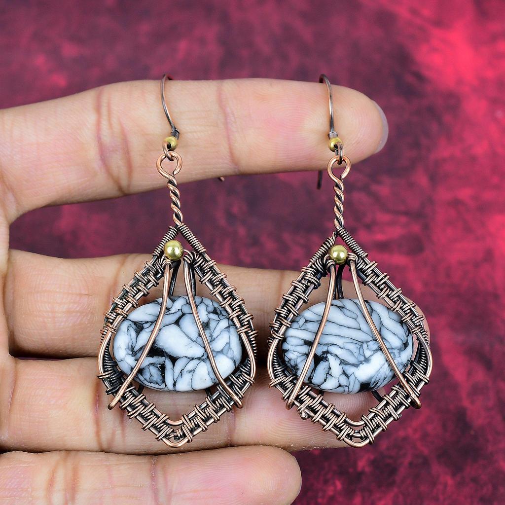 Pinolith Jasper Earring Copper Wire Wrapped Gemstone Jewelry Copper Handmade Earring Designer Jewelry Gifts for Mom Wire Wrap Dangle Earring