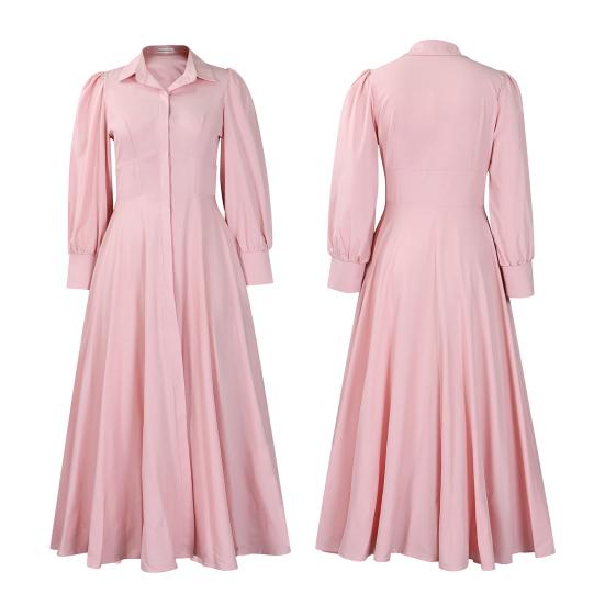Women's Button Down T-Shirt Dress Casual Long Sleeve Maxi Dress Flowy Lapel
