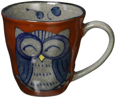 Nishikai Pottery Hasami Ware Mug (Medium) Hand-painted Owl Pattern Red 83977