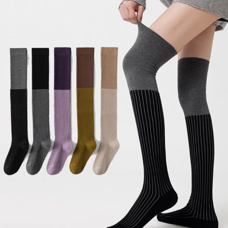 College Style Pressure Comic Leg Black and Gray Contrasting Over-the-knee Socks Women's Striped Slimming Autumn and Winter Thigh Socks