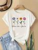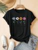 Women's Casual Short Sleeve T-Shirt - Retro Floral Print , Soft Stretch Round Neck Top, Cute T Shirts, Playful Graphic Tee