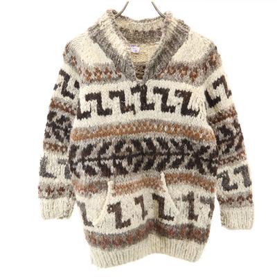 90s Nicholas New Wool Cowichan Zip Knit Parker Men L Beige(USED)