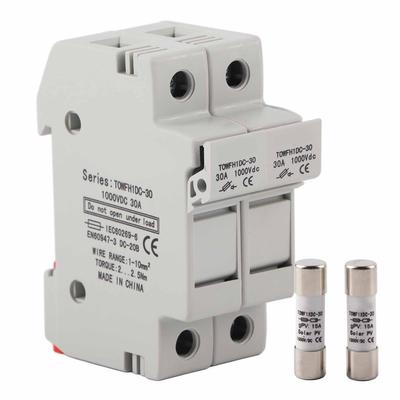 Fuse Holder Base 2 Pole DIN Rail Mount Power Distribution Control Equipment TOWFH1DC 1000VDC 2P15A