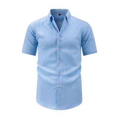 Summer Men's Short-sleeved Shirt Wrinkled Striped Shirt Lapel Casual Fashion Retro Fashion Versatile Cardigan