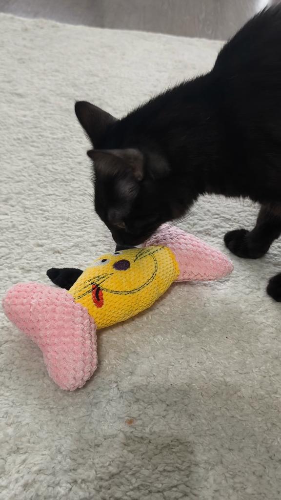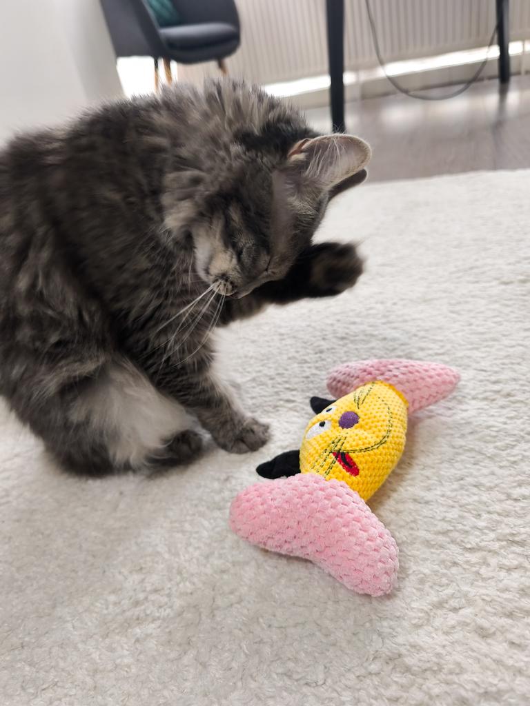 Perfect toy for entertainment and teething! This toy is simply perfect! I bought it for my small dog and also for the cat – and both of them just don't stop playing with it. It's soft and pleasant to the touch, but durable enough to withstand chewing – which is rare to find. The material (corn wool) is surprisingly high quality – both safe, ecological, and doesn't wear out quickly. The big plus for me is the sounds – the toy makes noises that really grab the animals' attention and keep them occupied for a long time.. Excellent also for puppies in the teething process – it soothes them and doesn't cause damage. A simple, cute, and really useful toy. Highly recommend!