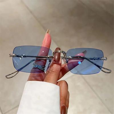 UV400 Rimless Rectangle Sunglasses Y2K Shades Vintage Eyewear for Women & Men
