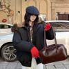 Horns Buckle Big Fur Collar Hooded Cotton-padded Jacket Women's Short Workwear Parkas