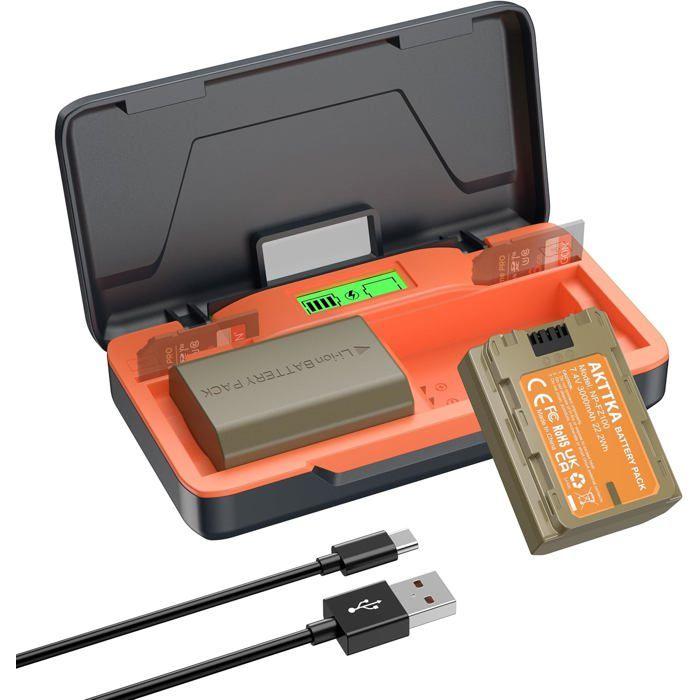 AKTTKA Batterie NP-FZ100 3000mAh (2 Pack) + Chargeur 20W pour Sony A7/A9/FX3, Écran LCD, Organisateur SD