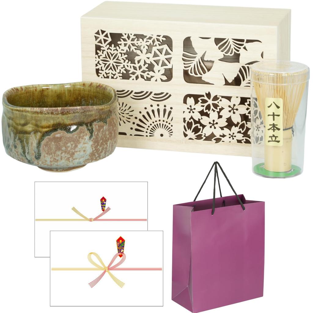 SEIDO Mino Ware Matcha Tea Made In Tea Ceremony Matcha Tea Gift Wooden Perfect for Beginners Set, Japan, Utensils, Bowl, Whisk, Set, Box, (Dark Green)