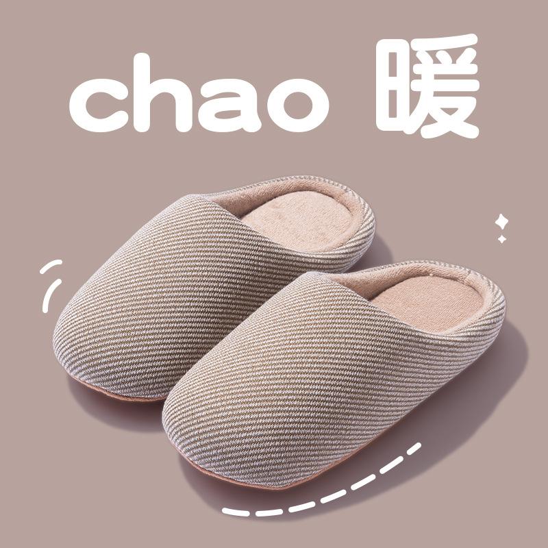 Japanese Home Minimalist Cotton Slippers Men Women Autumn Winter Indoor Silent Soft Sole Anti Slip Floor Slippers