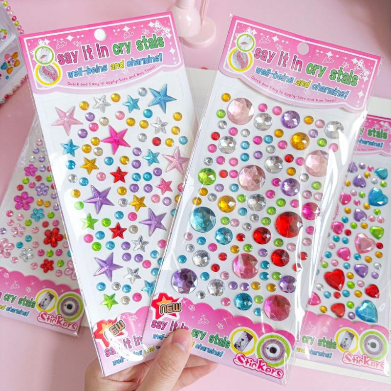 1 Sheets 3D Gem Acrylic Crystal Stickers Kids DIY Decoration Self Adhesive Jewel Crafts Sparkly Rhinestone Stickers Girls Gifts
