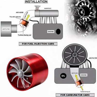 12V Car Electric Air Intake Fan Turbine Power Turbo Charger Tan Boost Bold Lines