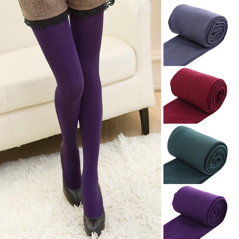 1Pair Women Thermal Full Foot Tights Warm Solid Color Winter Polyester Fiber Thick Fleece Lined Ladies Long Pants