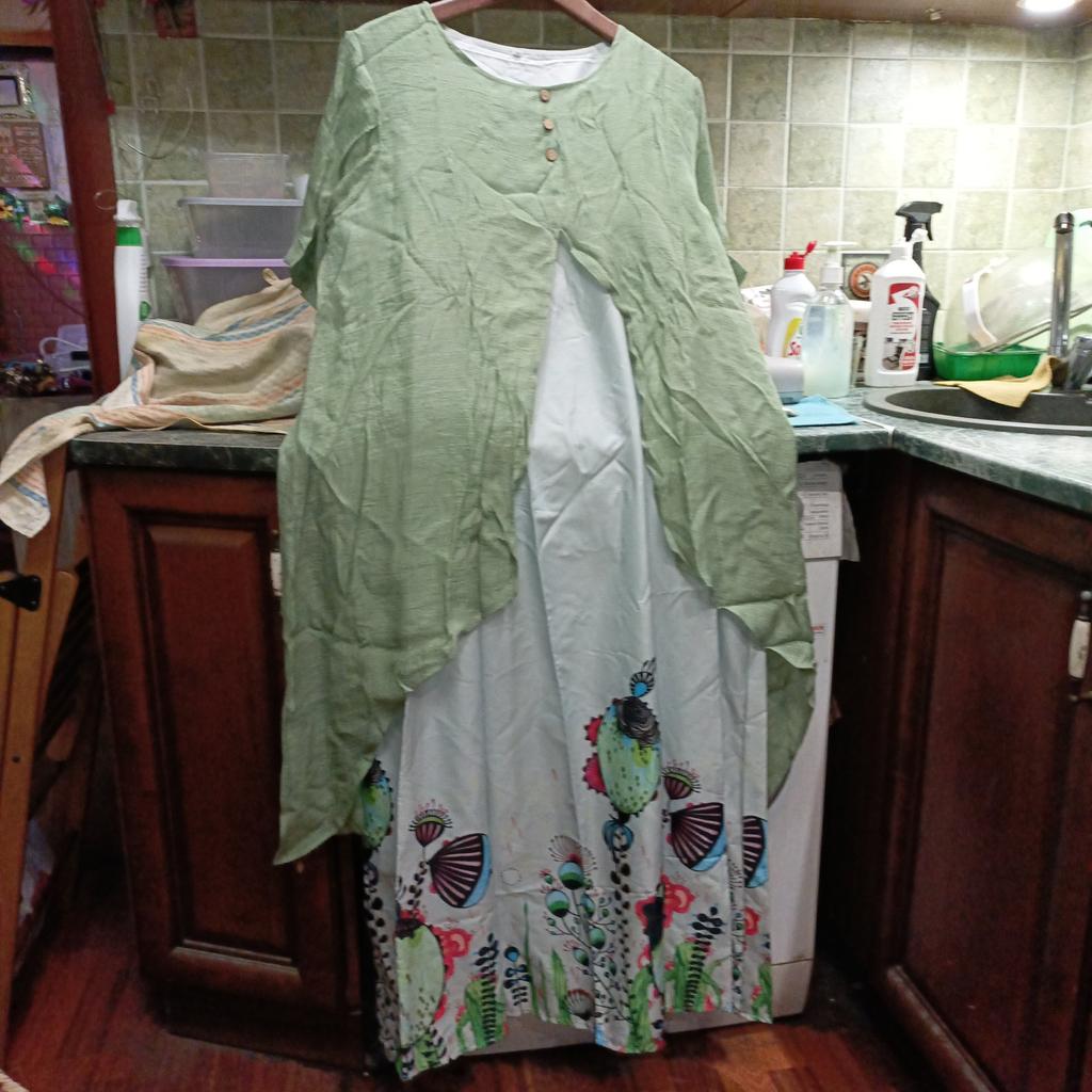 Women Vintage Fake Two Piece Dress Floral Print Short Sleeve Long Dress Please check the Size Chart before order. If you are not sure the size, please send message to us. Features: