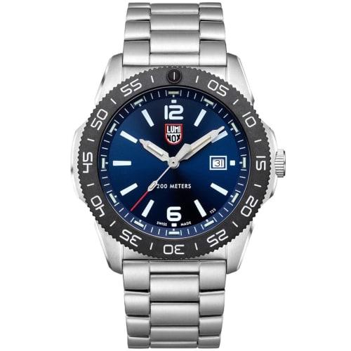 Luminox Men's Navy Seal Pacific Diver 3120 Series Silver Stainless Steel Oyster Band Blue Dial Quartz Analog Watch