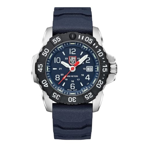 Description Life-threatening missions carried out under extreme conditions require decisions to be made on the fly.In this world, people rely on watches that can perfectly measure time with just a glance.The self-luminous system Luminox Light Technology (LLT) continues to emit light for approximately 25 years without the need for button operations or external light sources.This is what makes Luminox watches unique.Since 1993, Luminox has been an ESSENTIAL GEAR for some of the toughest elite organizations around the world, including the U.S. Navy SEALs and U.S. Air Force F-117 Nighthawk pilots.Luminox Light Technology is the ultimate self-luminous illumination system developed by Swiss MB-Microtech, a top company in the luminescent compound industry, that continues to emit strong light for long periods of time, day and night.There is no need for a light source like a phosphorescent watch that collects light and emits light, and there is no need to operate a backlight button or power source.It achieves visibility that allows you to instantly recognize the time no matter when you look at it.This Luminox light technology is installed in the hands, dial, bezel, tracer dots and dial, as well as the long and short hands and second hand.Starting with the original model "ORIGINAL NAVY SEAL 3000 SERIES", which was created in response to a development request from the US Navy SEALs, the NAVY SEAL SERIES continues to be adopted by public institutions around the world.Introducing the new NAVY SEAL RSC 3250 SERIES, which is made of three materials: rubber, steel, and CARBONOX™.The case material, which has a distinctive design designed to protect the crown, is made of solid 316L stainless steel.The unidirectional rotating bezel unique to the diver's model uses CARBONOX™, which has excellent lightness and strength and has been used since the original model, and has successfully reduced the overall weight by nearly 20% compared to the existing steel model.The lineup includes a model with a natural rubber strap with excellent water resistance and elasticity, and a model with a 316L stainless steel bracelet, which is made of the same material as the case.Designed for the dangerous missions of Navy SEALs such as emergency escape from torpedo tubes and infiltration into enemy territory, the NAVY SEAL RSC has specifications that meet the same military standards as the original model, such as 200m/20 ATM water resistance, and boasts high visibility under all conditions with Luminox light technology.Since the birth of the original model, Luminox has deepened its relationship with the U.S. Navy Special Forces, and has also become an official partner of the Navy SEAL Foundation.The NAVY SEAL RSC 3250 SERIES celebrates the achievements of the Navy SEALs and is a special watch prepared for professionals who continue to perform harsh missions.Ref.3253.CB has white indexes placed on the navy dial, which is the image color of the US Navy, to ensure visibility.