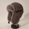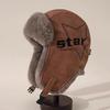 American Pilot Hat Men's and Women's Winter Velvet Thickened Warm Cycling Ear Protection Hat Retro Pu Leather Hat