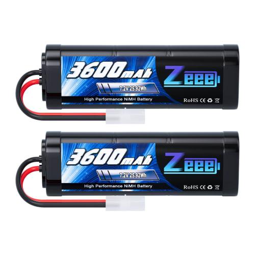 Zeee 7.2V 3600mAh NiMH Battery with TAMIYA Plug, 2-Pack, High-Capacity Nickel-Metal Hydride Battery for RC Cars, RC Boats, Racing Cars, and More