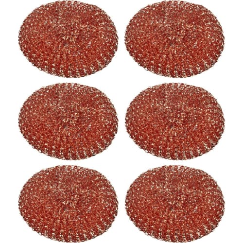 Fujisho Copper Kitchen Sponges, Pack of 6, 9cm Diameter X 2cm Thick, Prevents Bacteria Growth, For Stubborn Stains, Pure Copper Scrubbing Brush, F4389