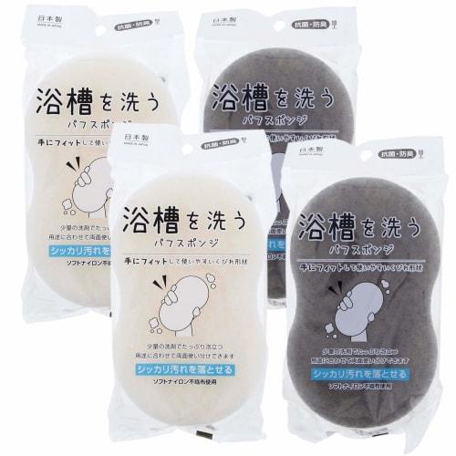 Plus One Bath Cleaner Sponge Puffs for Bathtub Cleaning, Set of 4, White/Gray, Approx. 8.5 X 14.5 X 5cm