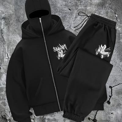 Zipper Hoodie Set, Hooded Sweatshirt, Leg Binding Pants, Double Hood Mask, Zipper Hoodie and Sweatpants Set