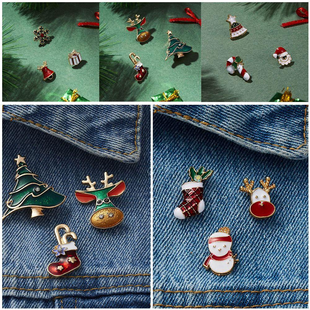 Sock Brooches Santa Claus Snowman Christmas Brooch Xmas Pins Enamel Badges Christmas Jewelry