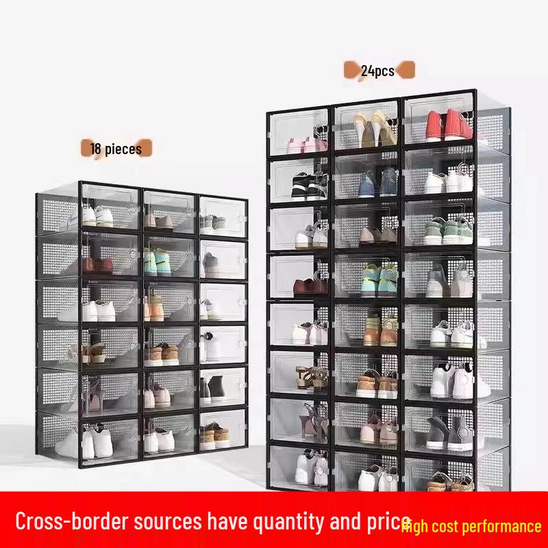 Flip-Top Transparent Plastic Shoe Box - Space-Saving Foldable Shoe Storage Cabinet and Rack