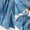 Lustrous Micro-Outline Blue-Purple Pleated Designer Shirt Dress Fabric