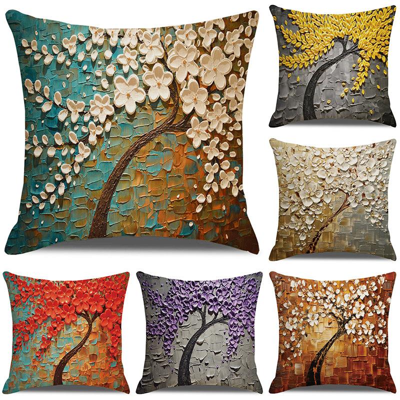 Nordic Home Furnishings Oil Painting Tree Pillow Cover Cartoon Pillow Linen Sofa Cushion Cover New Home Furnishing