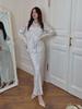 Elevate your wardrobe with this elegant satin print ensemble, featuring a sophisticated long sleeve shirt paired with a high waist fishtail skirt. Designed for the modern woman, this set combines European and American fashion influences to create a chic and versatile look. The luxurious satin fabric drapes beautifully, offering both comfort and style, making it perfect for any occasion.