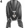 Women Fashion Soft Bead Tassels Scarf with Love Heart Charm Pendant Accessory