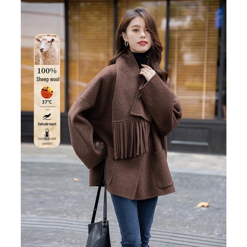 MOKANA Women's Luxury Double-Faced Wool Coat with Scarf