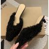 Luxury Kitten Heel Furry Mule Slides Women Rose Pink Sexy Slippers Ladies Pointy Toe Stiletto Plush Sandals Winter Party Shoes