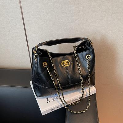 Autumn and Winter New Women's Bags Large-capacity Diamond Chain Bags High-end Sense Solid Color Tote Bags Fashionable Single Underarm Shoulder Bags