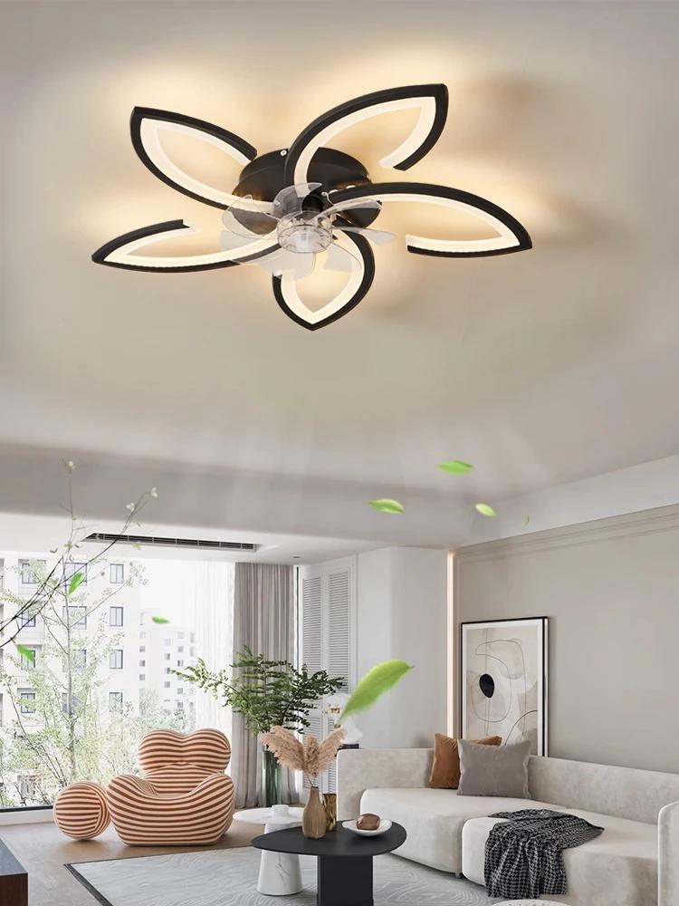 Led Low Noise Ceiling Fan Chandelier Living Dining Table Room Bedroom Kitchen Lights Black White Home Decoration Lamps Fixtures