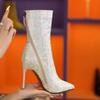 Sexy Shining Rhinestone Super High Heel Short Boots Fashion Boots New Pointed Side Zipper Slim Boots Martin Boots