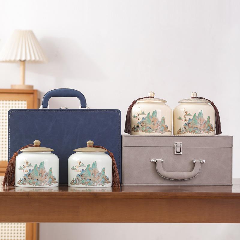 Retro Ceramic Tea Caddy with Sealing Lid - Half-Jin Capacity for Green, White, Black Tea - Gift Box Included