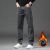 Yiliteng Men's Winter Fleece-Lined Business Casual Jeans