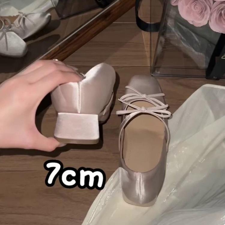 Sheepskin Version~ Gentle Wind Versatile Square Head Shallow Mouth Single Shoes 2025 Summer New Bow Thick Heel Mary Jane Shoes