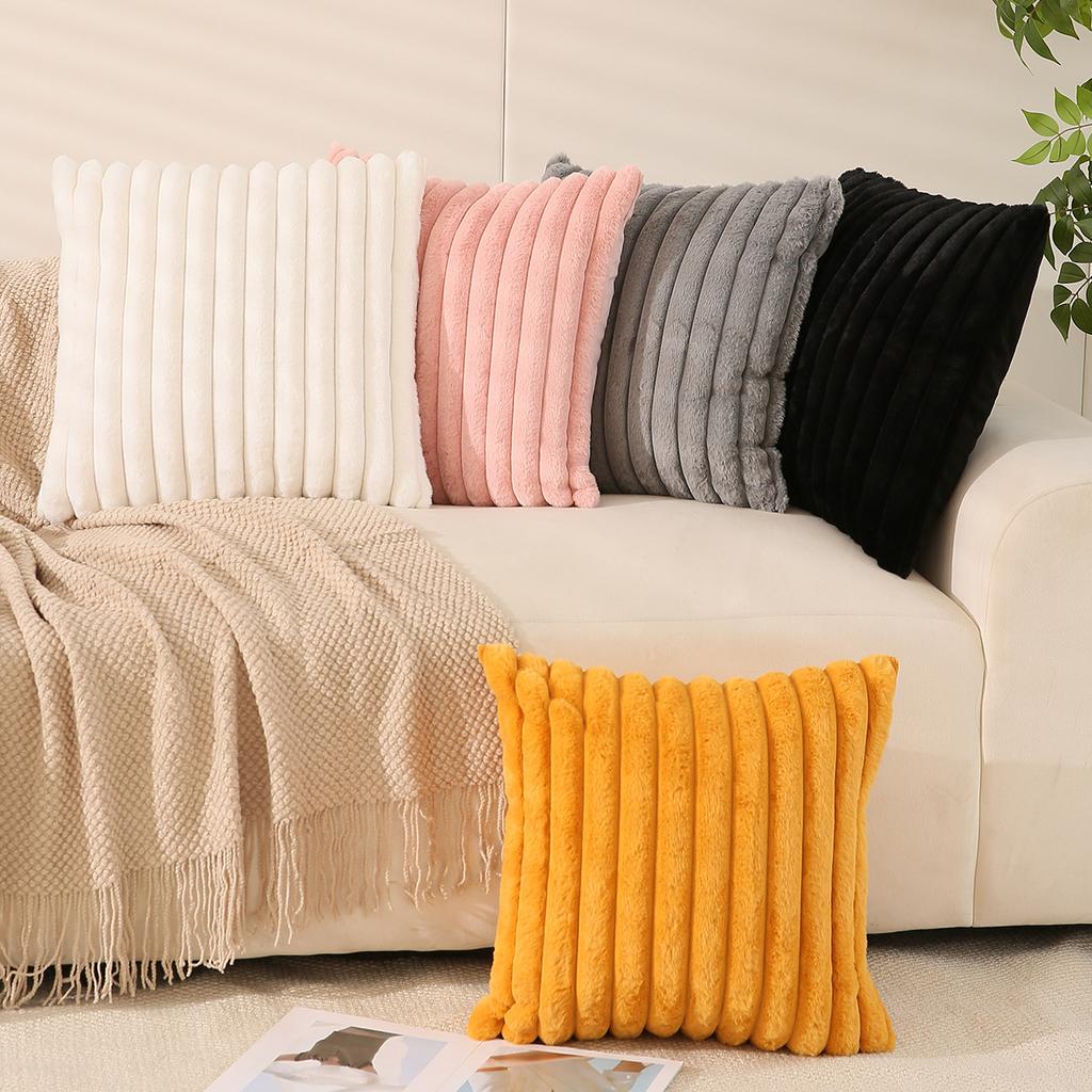 Solid Color Ins Style Imitation Rabbit Fur Pillow Plush Striped Three-dimensional Cushion Indoor Home Versatile Comfortable Sofa Cushion