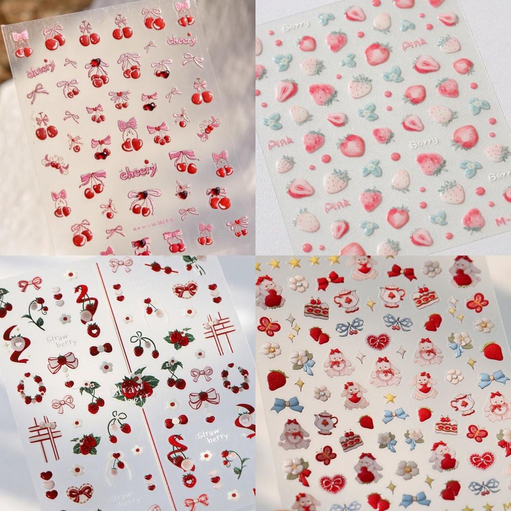 New Fruit Strawberry Jelly Nail Art Cute Stickers Sweetheart Cherry Bow Rabbit Diy Nail Decoration
