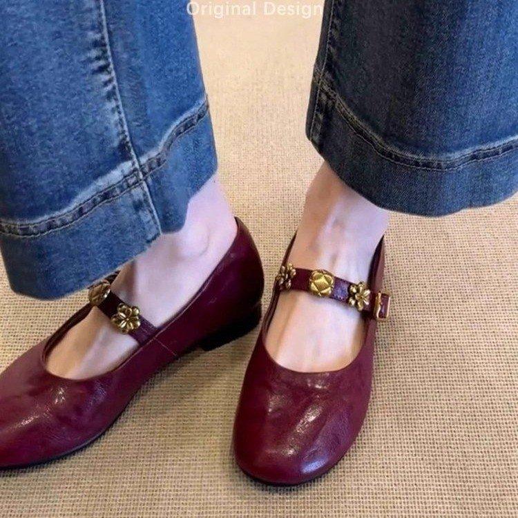 Really Soft Leather~ Versatile Flat-bottomed French Single Shoes for Women 2025 New Red with Skirt Mary Jane Small Leather Shoes for Women
