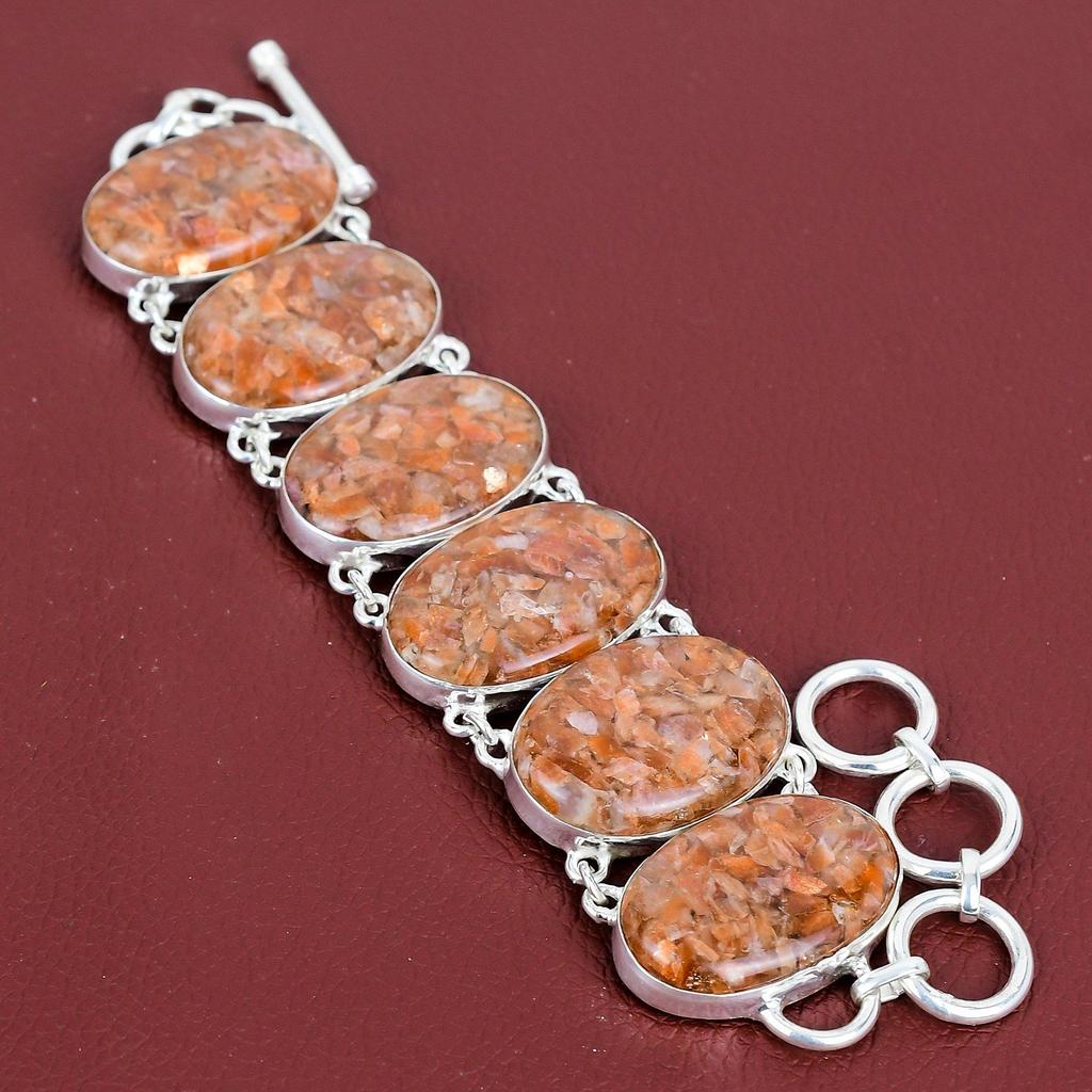 Sunstone Bracelet Natural Gemstone Bracelet Unique Jewelry 925 Sterling Silver Bracelet Adjustable Chain Bracelet Handmade Bracelet for Gift