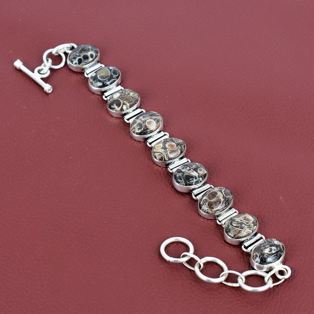 Turritella Agate Bracelet Gemstone Jewelry 925 Sterling Silver Bracelet Adjustable Chain Handmade Bracelet Brand New Jewelry Gifts for Women