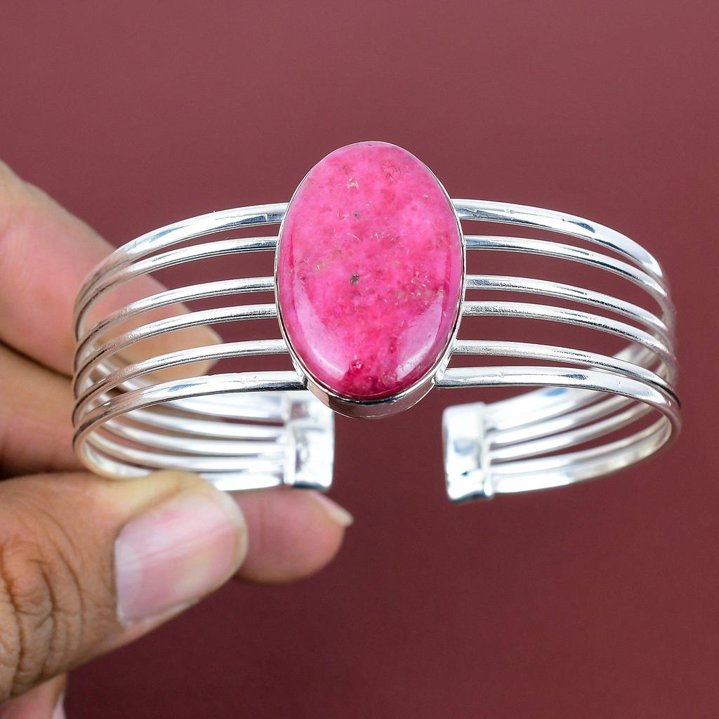 Rhodonite Bangle Gemstone Handmade Jewelry 925 Sterling Silver Cuff Bracelet Adjustable Bangle Very Pretty Rhodonite Jewelry Gifts for Mom
