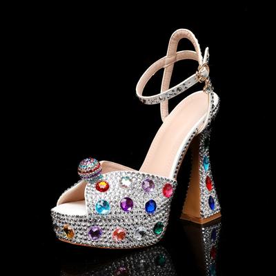 Luxury Colorful Rhinestones Women Gladiator Sandals Sexy Ankle Strap Platform Wedges High Heels Summer Party Prom Shoes