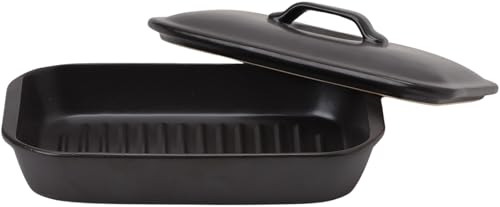 Ishigaki Delish Life Microwave Grilling Ceramic Plate for Meat and Fish, with Rectangular Lid, 19 X 11 Cm, 4577
