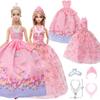 Pink Series Doll Clothes for 30cm Doll Princess Dress Outfits Shoes Necklace Bags Kids Accssories Toy Christmas Birthday Gift