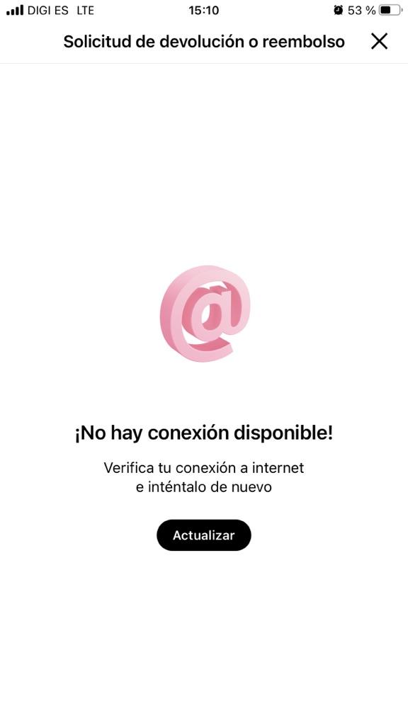 I only received covers, not the sofa cushion as stated in the description. I want my money refunded, please. When I try to request the refund, right at that moment it tells me I have no connection, but I can do anything else within the app, only I don't have a connection to request the refund. This makes me very angry. As you can see in the image, I have full coverage and it tells me a thousand times that I don't have a connection.